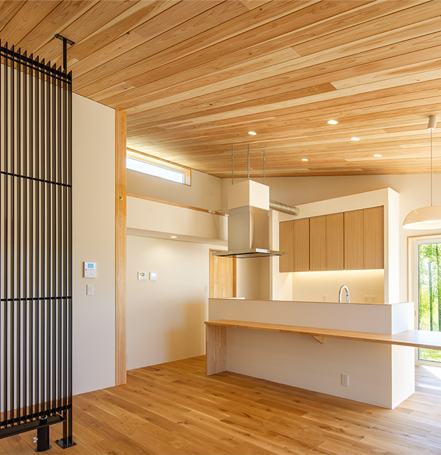 木のあたたかさが広がる平屋の空間に、